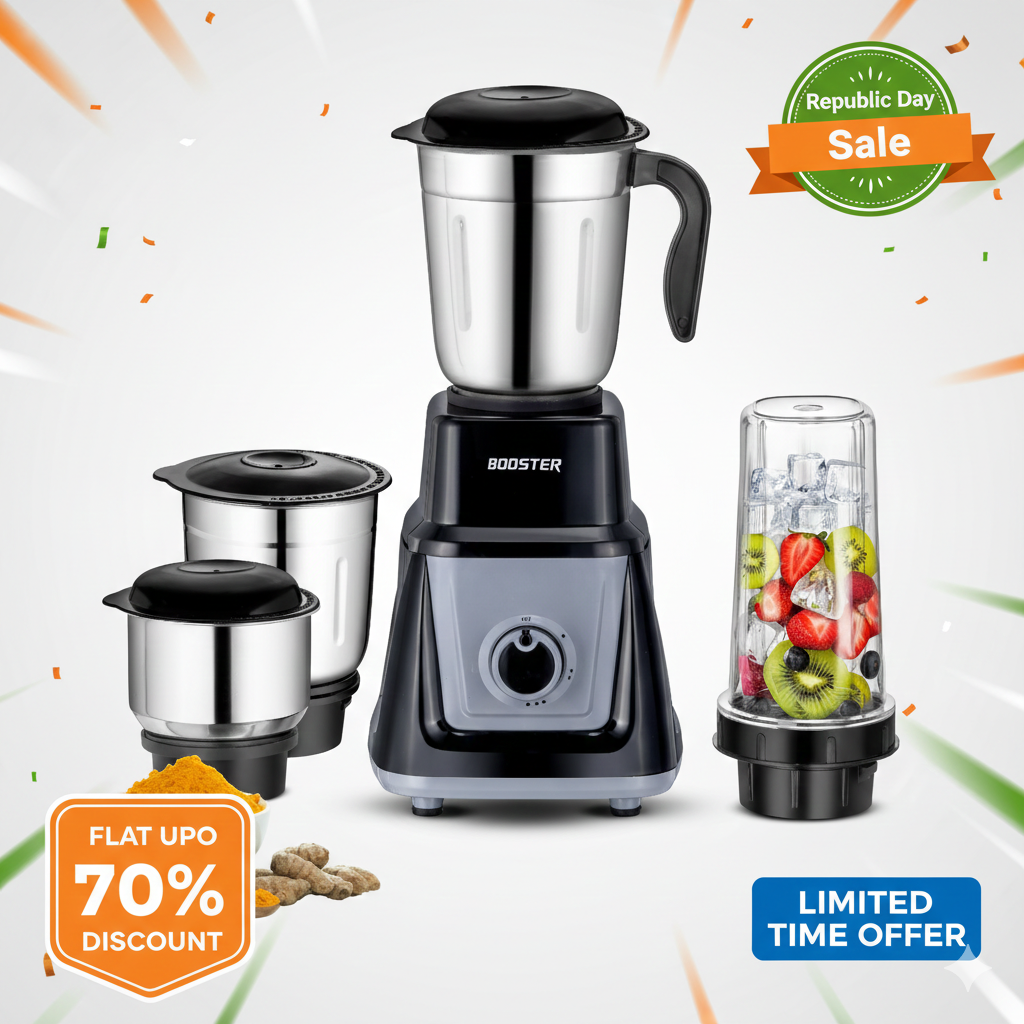 With the Republic Day Sale, this is the perfect chance to buy from the Top 10 juicer mixer grinder manufacturers in Delhi, including Booster, and enjoy up to 70% discount while upgrading your kitchen appliances.