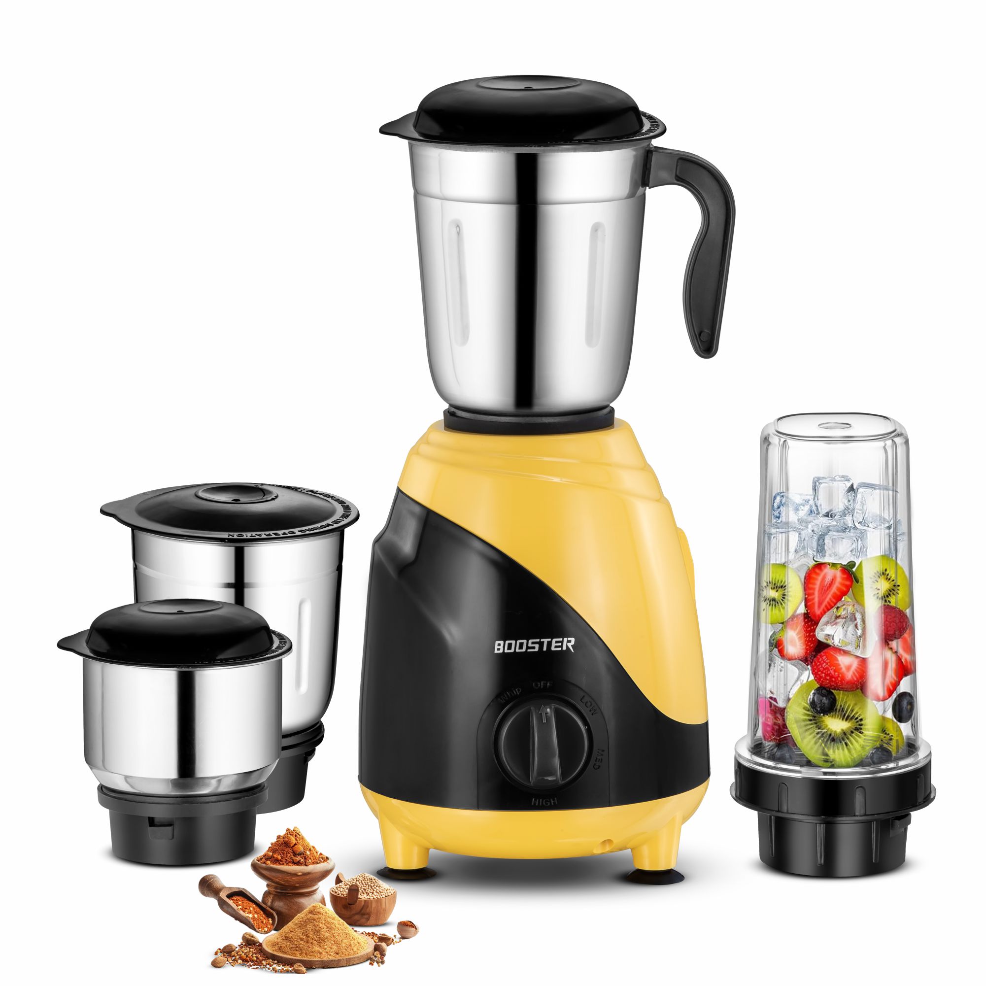 The BOOSTER 550 Watt 4 Jar Mixer Grinder is a powerful and reliable kitchen companion that simplifies a wide range of cooking tasks. Its robust motor, versatile jars, and user-friendly design make it a must-have appliance for any kitchen. Whether you are preparing a quick smoothie for breakfast or grinding spices for a festive meal, this mixer grinder is designed to deliver consistent and excellent results every time. Warranty Warranty Summary 18 Month Warranty on Motor and 6 months Warranty on Jars, One side shipping has to be paid by customer And For 1 Year Free Extended Warranty Registered On 9896747106 (11AM To 7 PM) or Email at boosterindia555@gmail.com Warranty Service Type Customer needs to send the product to the Authorized Service Center to get the product repaired or inspected. Covered in Warranty 18 Month Assured Replacement Warranty Of Motor From Our Authorized Service Center Only. Not Covered in Warranty Warranty shall not cover any damage resulting from adaptations or adjustments which may be made to the product. Warranty does not extend to cabinets, knobs, labels, or any accessories. Warranty does not cover the risk to the product caused by accident, lightening, water, fire, other acts of God, improper ventilation, dropping or excessive shock or any external cause beyond Havok control. Domestic Warranty 1 Year